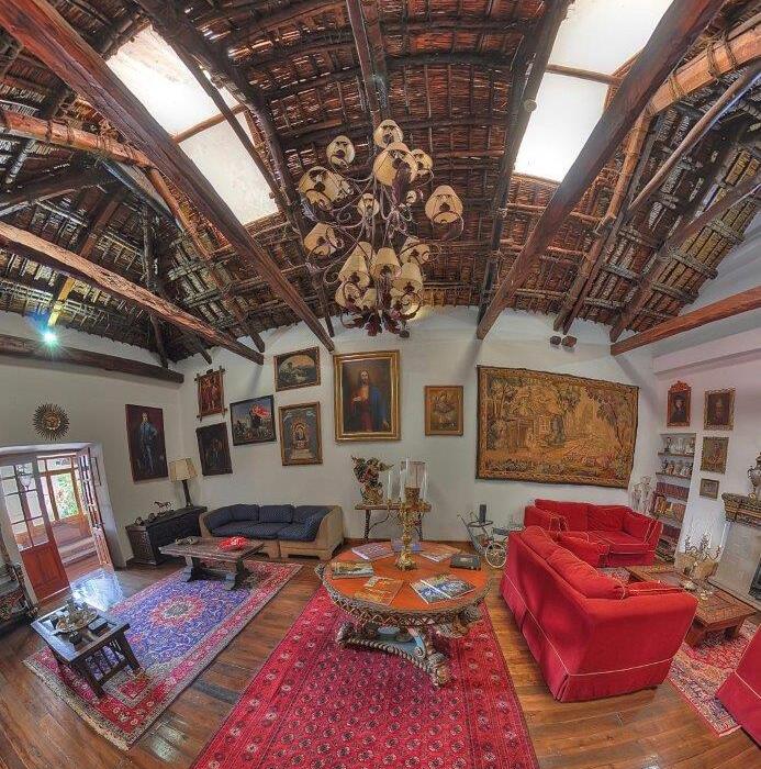 Siglo XVI. En esta sala hay un piano, muebles de Louis XVI, consolas y mesas francesas. Está en la parte colonial de la mansión, con sus grandes paredones de adobe, se ingresa por ahí al gran salón, totalmente original, el techo es admirable, ya con 300 años de antigüedad, es hecho con bareque, atado con lianas y tormentos, que son betas de cuero, que se utilizaba para castigar. La estructura es hecha con maderas finas que se han mantenido en el tiempo.